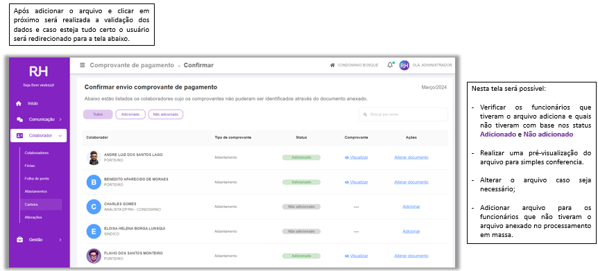 E a primeira funcionalidade a ser aberta dentro do Portal é a carteira onde é realizado a entrega dos comprovantes pagamento. Veja como ficou: