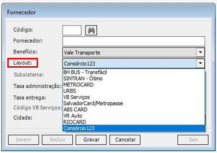 A partir da versão 39.14/10.4.74.90 foi implementado o layout da Operadora Consórcio 123 para comprar de benefício do Vale transporte.