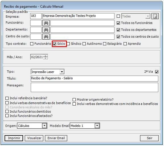 Foi realizada melhoria para que quando o Tipo Contrato no cadastro do colaborador for Sócio, o Recibo de Pagamento, ao invés de trazer a descrição como Funcionário, será apresentada como Sócio.