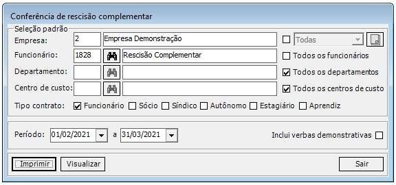 Nessa rotina, é realizado a impressão do relatório de conferência da rescisão complementar.