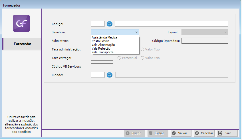 Nossa tela de cadastro de fornecedores também foi aprimorada para atender melhor às demandas diárias da rotina de benefícios. Agora, nossos usuários podem cadastrar fornecedores associados aos processos de solicitação de vale-transporte, alimentação, refeição e assistência médica, de forma prática e centralizada, conforme suas necessidades. Essas melhorias visam tornar o gerenciamento de fornecedores mais eficiente.